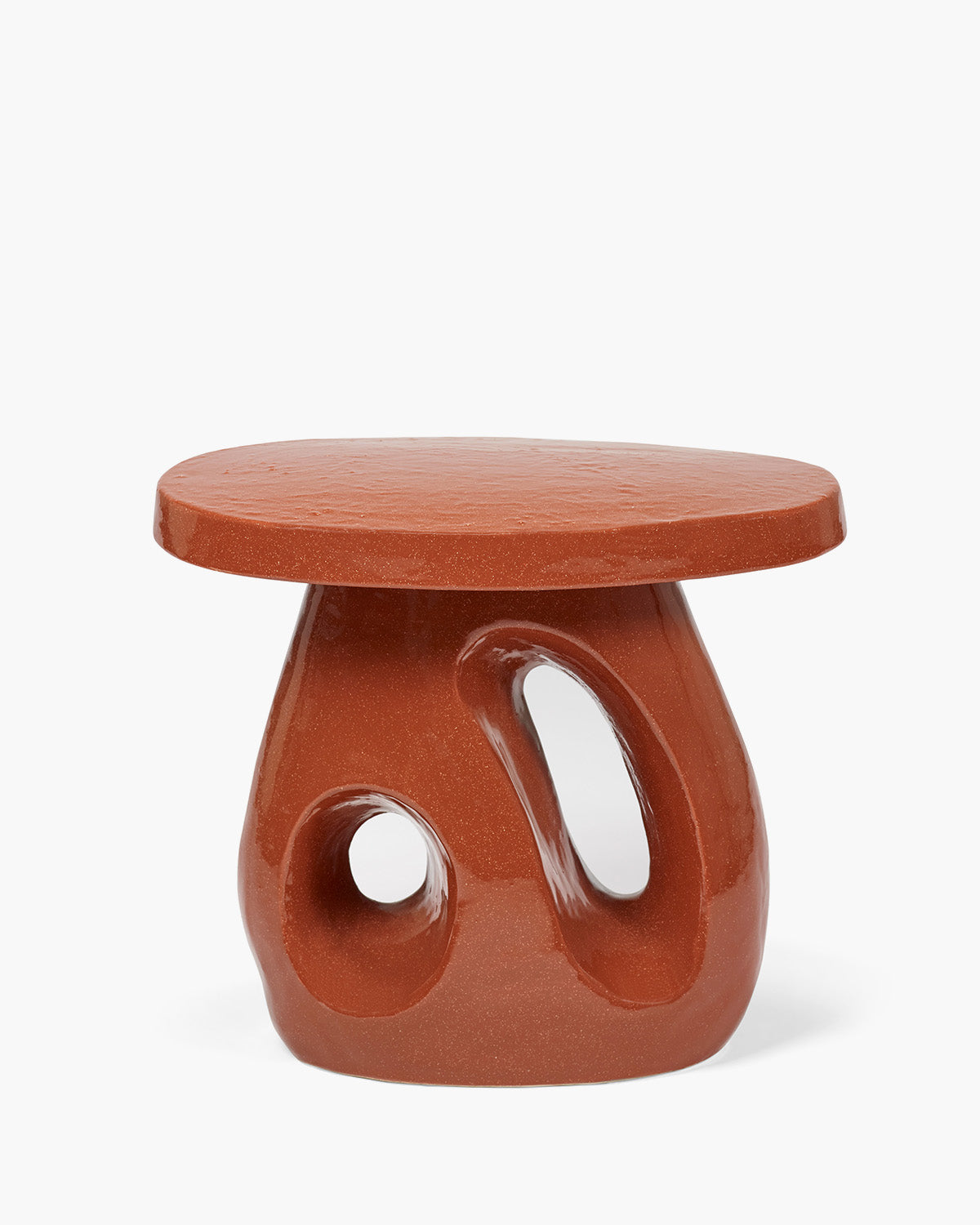 De Bijzettafel 10 Amé uit de collectie Side tables van Marie Michielssen is een handgemaakt designobject dat kunst en functionaliteit samenbrengt. De keramische vorm en warme roestkleur geven dit stuk een expressief karakter en maken het tot een opvallende eyecatcher.