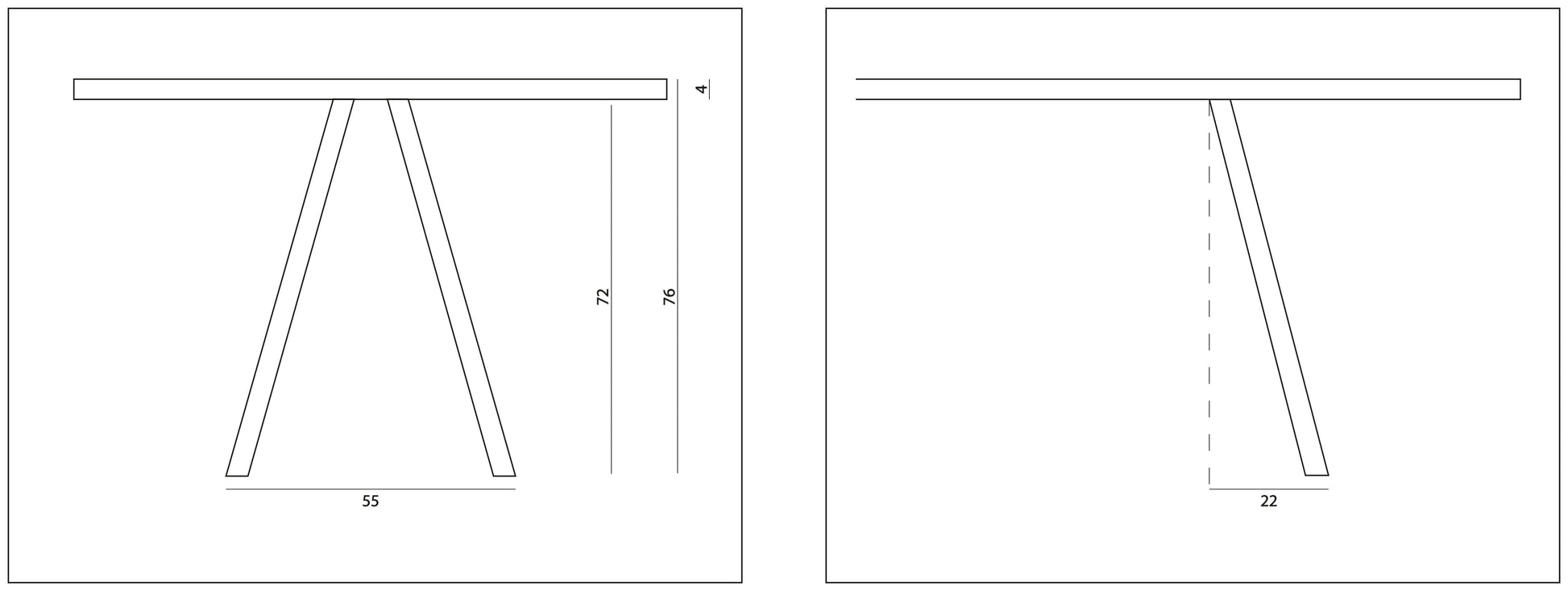 4 platte, ovale kokers vormen de basis van de tafel. De maten van de koker is 5x3cm.