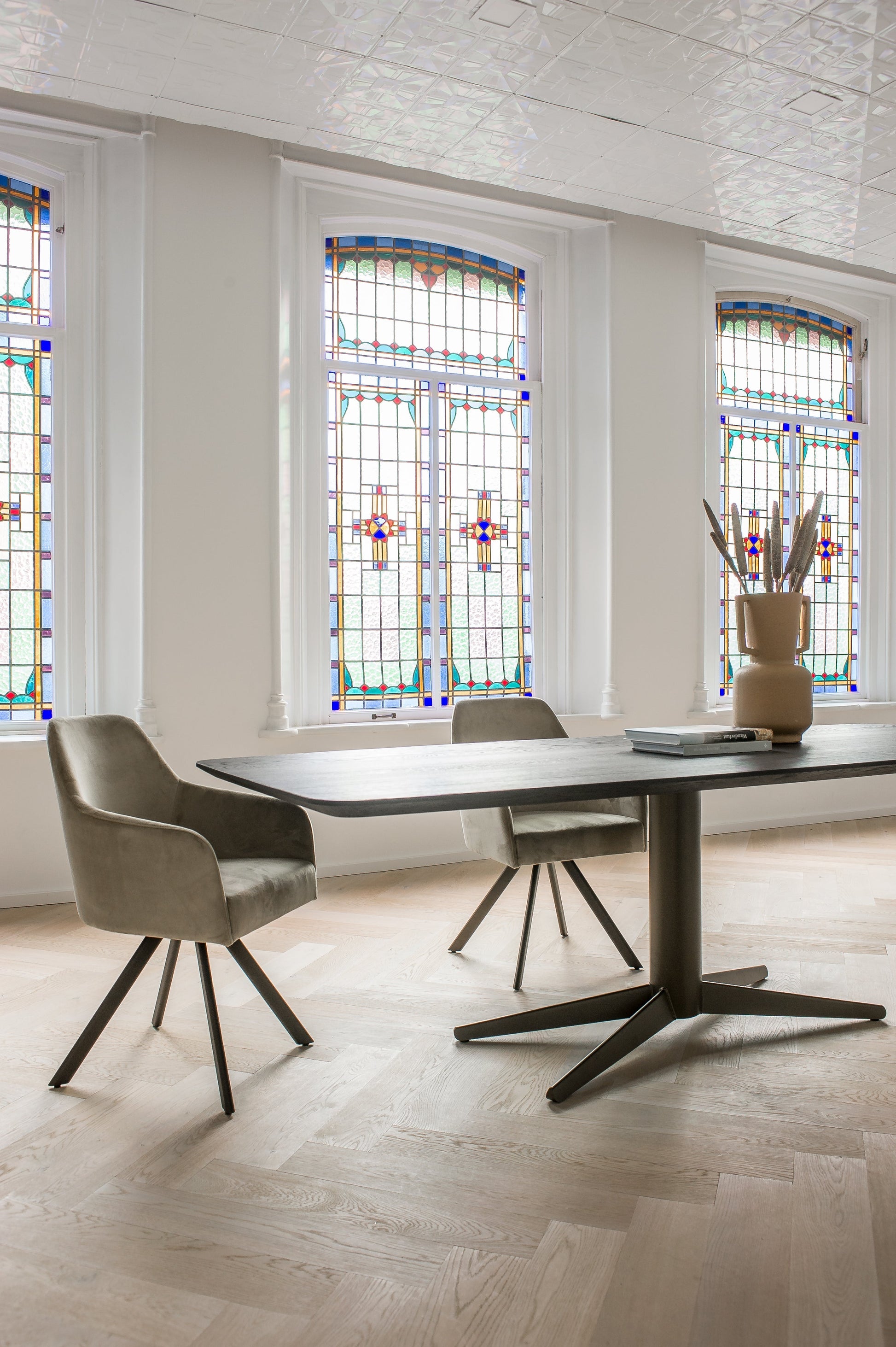 Designpoot, geeft de gebruikers veel ruimte om de tafel heen. Ondanks dat het design minimalistisch oogt, is de poot zeer solide