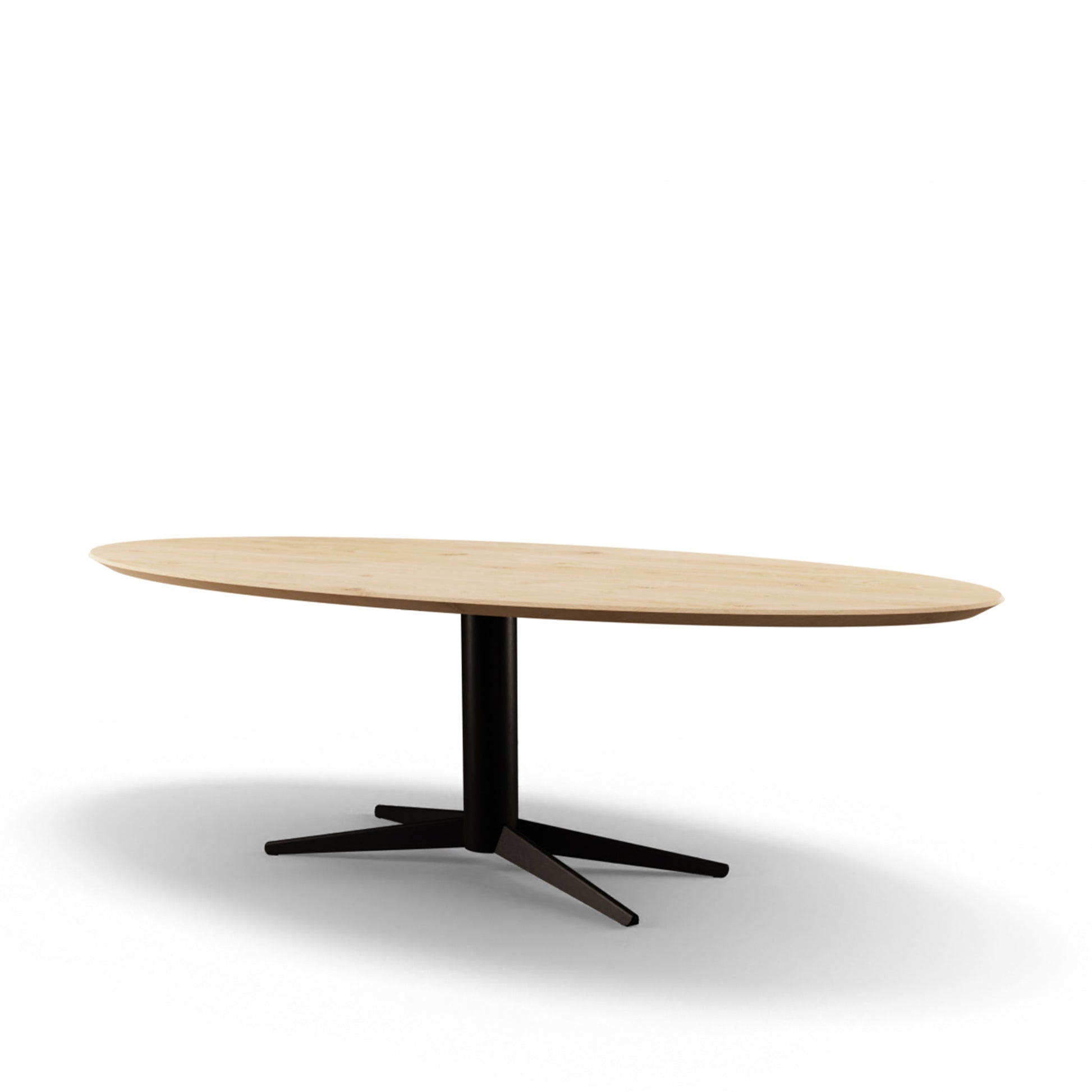 Designpoot, geeft de gebruikers veel ruimte om de tafel heen. Ondanks dat het design minimalistisch oogt, is de poot zeer solide