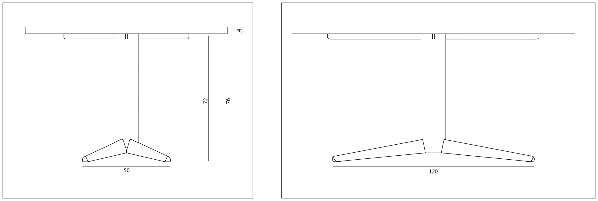 Designpoot, geeft de gebruikers veel ruimte om de tafel heen. Ondanks dat het design minimalistisch oogt, is de poot zeer solide