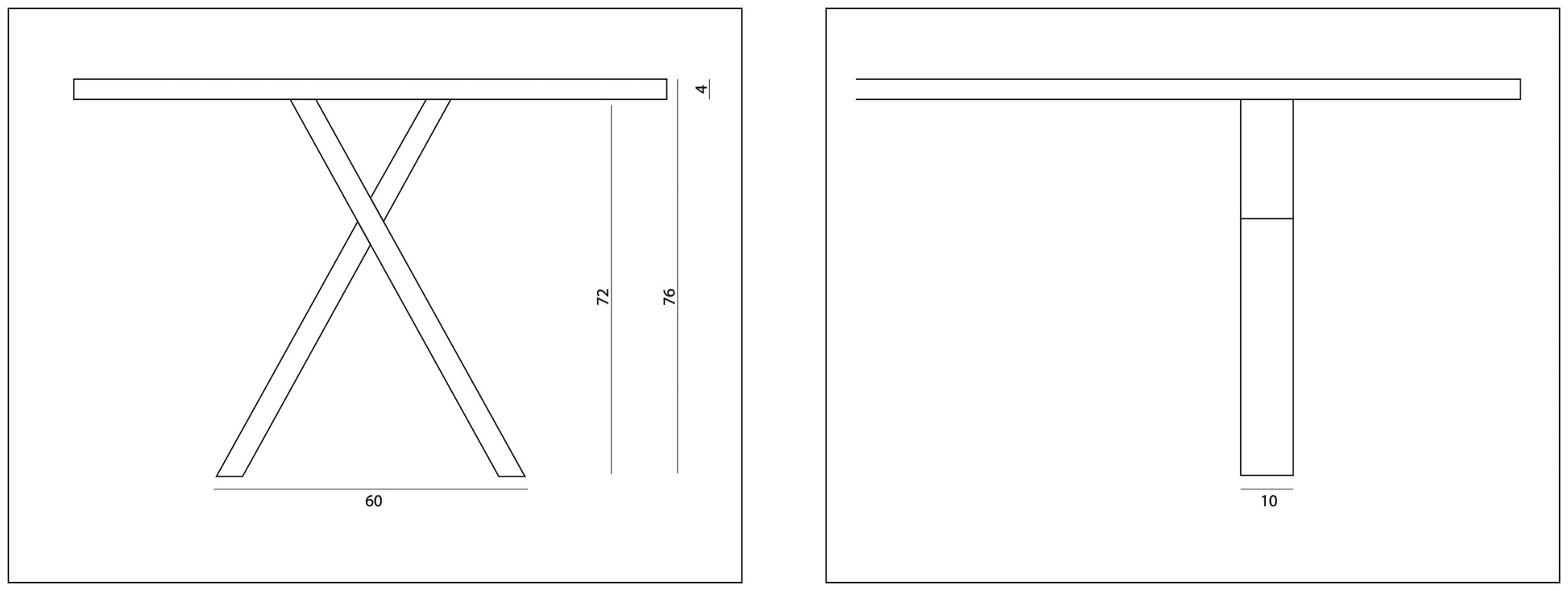 Eiken variant van balk 10x5cm. Doordat de poot op een stoelhoogte een minimale breedte heeft, kun je de stoelen bijna helemaal aanschuiven.