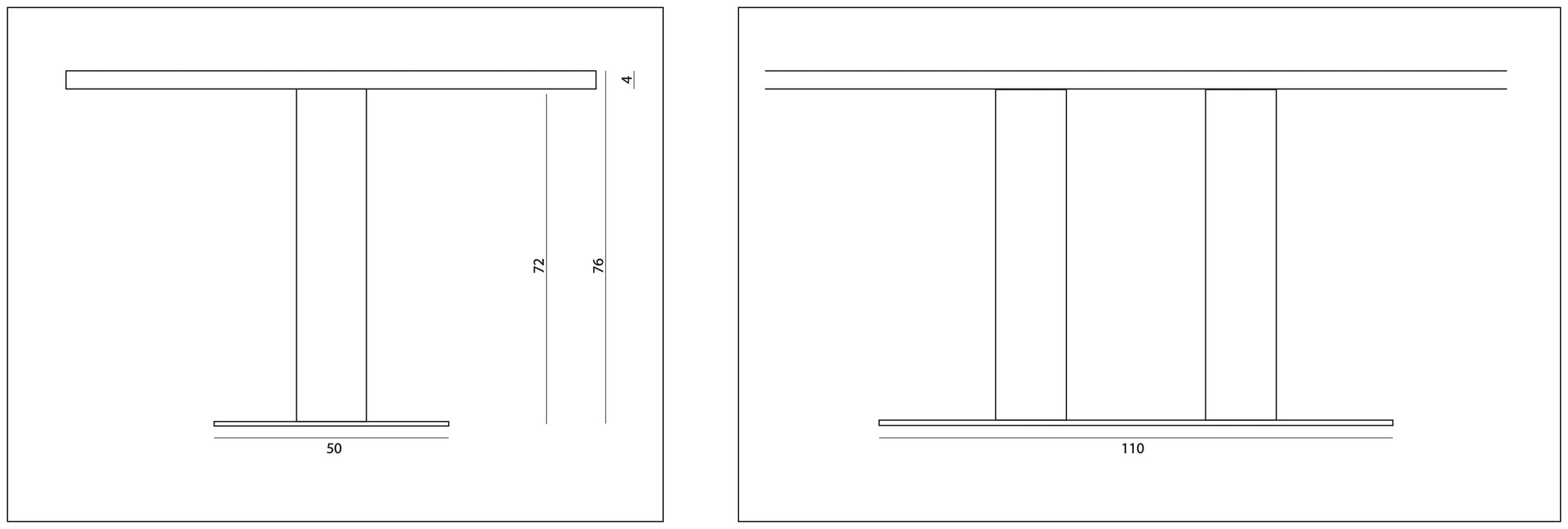 Elegante poot met ovale metalen bodemplaat. De 2 staande buizen hebben een diameter van 15cm en dragen het blad. Geen lasnaden zichtbaar.