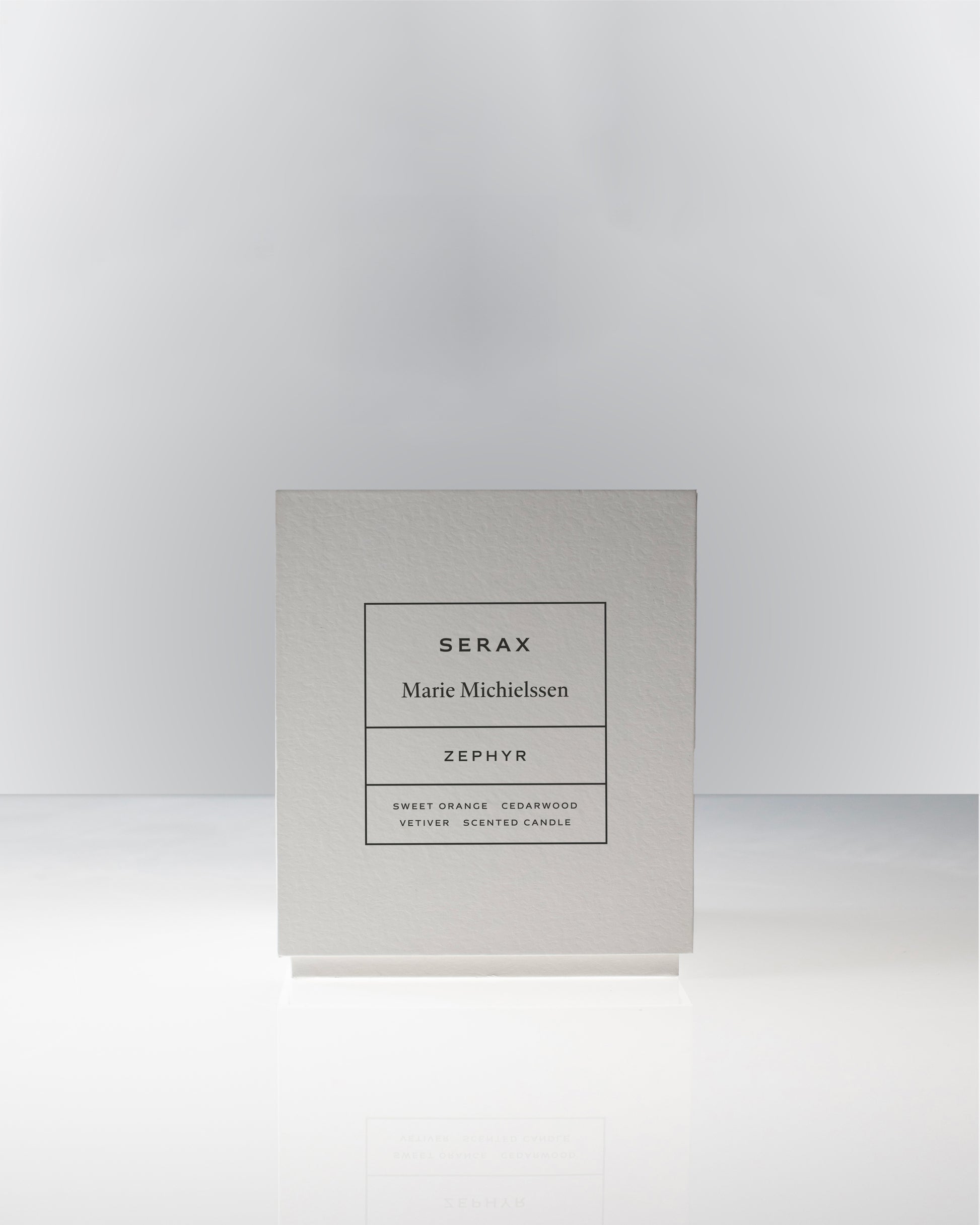 De Zephyr geurkaars S van Marie Michielssen is handgegoten met natuurlijke sojawas en combineert design met geurbeleving. De kruidige geur van zoete sinaasappel, cederhout en vetiver brengt warmte en sfeer in huis.